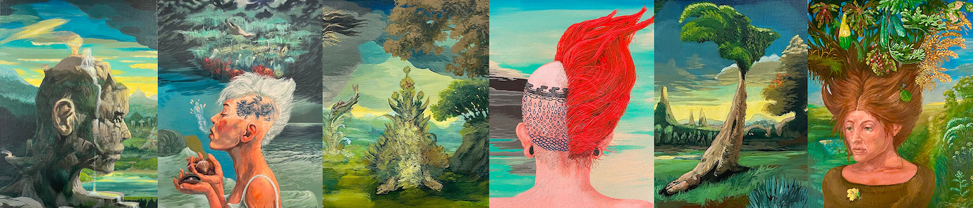 Herman James is a painter whose work in oil and acrylic engages the human figure and landscape through a distinctly surrealist lens. His practice builds upon the foundations of surrealism while exploring contemporary interpretations of form and place.